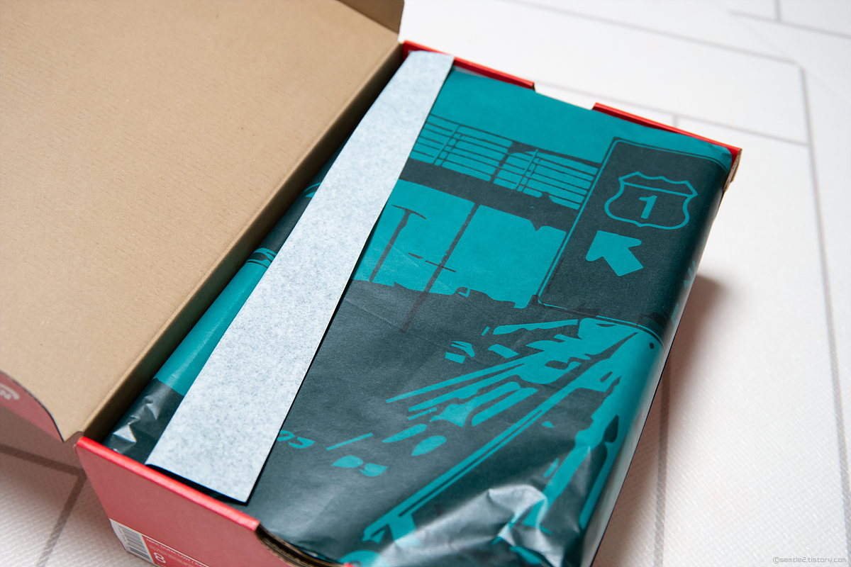 박스는 일반 신발 박스와 동일한 빨간색 박스.. 대부분의 나이키 신발은 저 박스다. 일부 포스나 조던 그리고 러닝화중에서 다른 박스를 사용하기도 하는듯 하다.